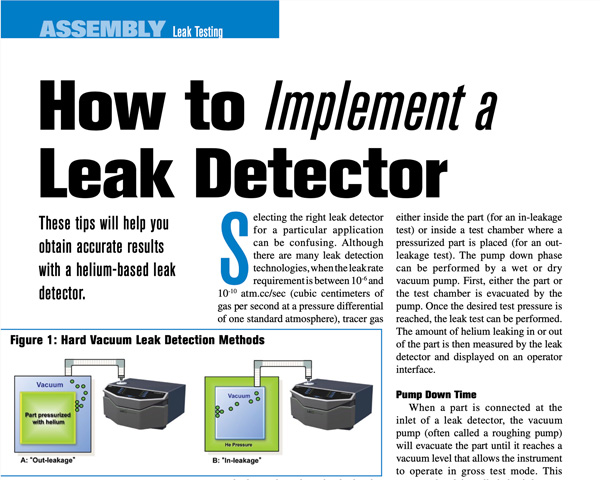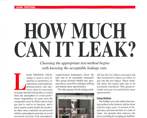 You recently won a major contract requiring the implementation of leak testing processes and you need assistance with your application.