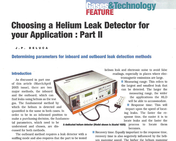 To assist customers with new leak testing applications and projects (establishing and/or reviewing of the leak testing application leak rate based on application requirements and/or industry standards; Defining and selecting the best leak testing method based on application leak rate requirements and economics; Selecting the leak testing equipment manufacturer; Performing system acceptance at the manufacturer’s site and/or at your installation site).